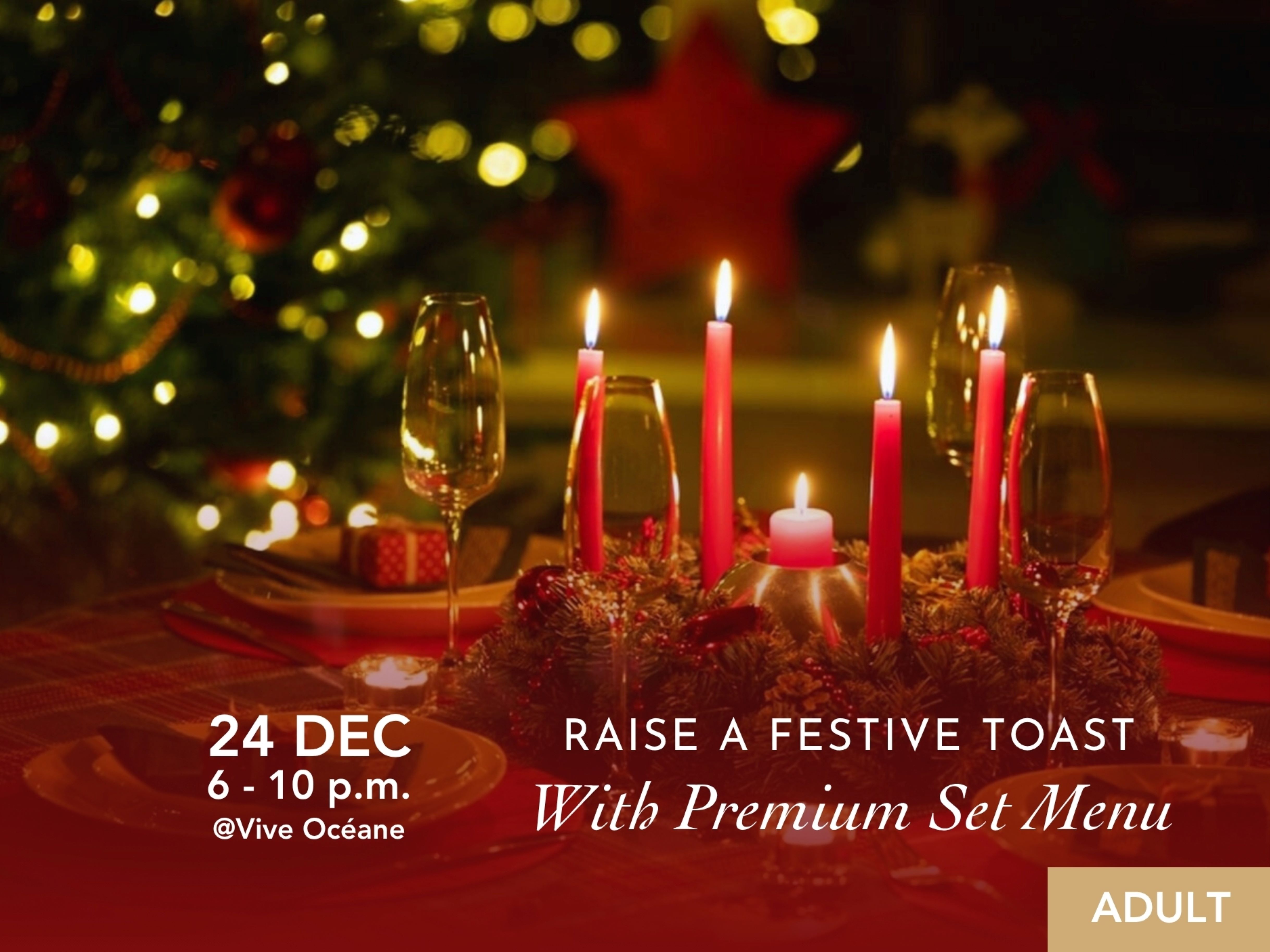 Embrace the holiday spirit with a lively beachfront celebration at Vive Océane. Indulge in exquisite French Mediterranean-inspired creations featuring premium lobster, foie gras, and festive bubbles — perfect for sharing with family and friends as you dine to the rhythm of the sea breeze.